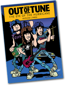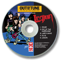 OUT OF TUNE comes with a CD which contains 8 songs recorded by Matt and LEGION. Actually, Anthony wrote all of the songs and is singing all vocals, guitars, bass and drums. Four octaves were sung, Les Pauls were humming, The "Green Machine" was roaring and the double bass drums were plentiful. Pop in the CD and listen to the anthems of Legion while you read OUT OF TUNE for the full 80s impact.