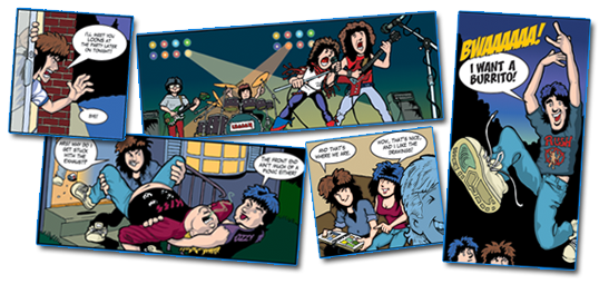 OUT OF TUNE: EYE OF THE HURRICANE is a colorful visual explosion that pays homage to 80s music, guitars, and lots of big hair! What’s more, the center of the book features excerpts from Matt's sketchbook that illustrate Legion's rotating lineup and explains their "Quest for a Guitarist." Any person who is a musician, grew up in the 80s, appreciates good ‘ol fashioned rock music, or secretly wants to grow a mullet will love this book!