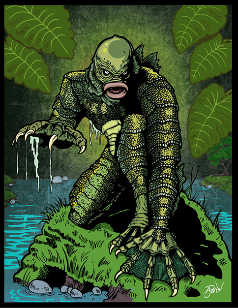 Illustration of The Creature from the Black Lagoon for Universal Monsters merchandise.