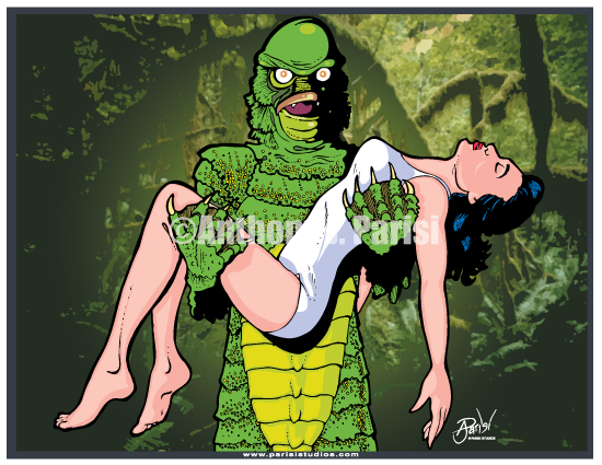Illustration of The Creature from the Black Lagoon for gallery exhibit.