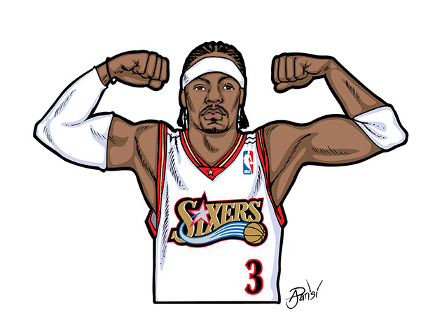 Illustration of Allen Iverson for the Philadelphia 76ers.
