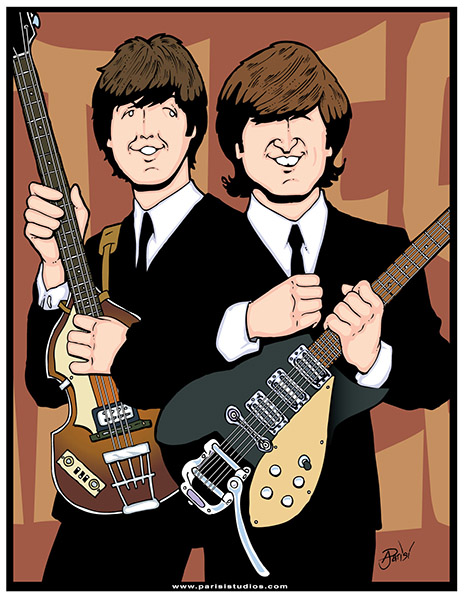 Caricature of Paul McCartney & John Lennon for the WMGK Classic Rock Art Show.