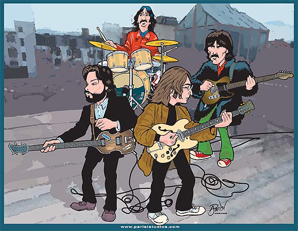 Illustration of the Beatles for the WMGK Classic Rock Art Show.